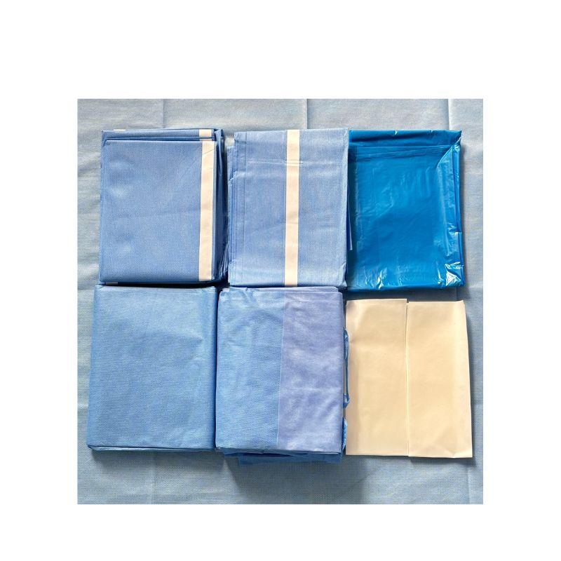 1. డ్రేప్ షీట్, 175*160cm, 40g SMS ఫాబ్రిక్, 2cm175cm డబుల్ సైడెడ్ టేప్ జోడించబడి, 1 ముక్క 2. డ్రేప్ షీట్: 240150cm, 40g SMS ఫాబ్రిక్, 2cm240cm డబుల్ సైడెడ్ టేప్ జతచేయబడి, 1 ముక్క 3. డ్రేప్ షీట్: 9075cm, 40g SMS ఫాబ్రిక్, 2cm90cm డబుల్ సైడెడ్ టేప్ జోడించబడి, 2 ముక్కలు 4. మీయా టేప్: 145*78cm, 1 ముక్క 5. మెడికల్ టేప్: 10 * 50cm, 2 ముక్కలు 6. సర్జికల్ గౌన్: 130*150cm, 40g SMS ఫాబ్రిక్, 2 ముక్కలు 7. మెడికల్ టవల్: 40*40cm, 70g పెర్ల్ కాటన్, 2 ముక్కలు 8. చుట్టు వస్త్రం: 100*100cm, 35g SMS ఫాబ్రిక్, 1 ముక్క |